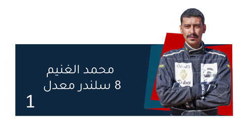 | الاول في فئته | محمد الغنيم | فئة 8 سلندر معدل | 03:00.3 |