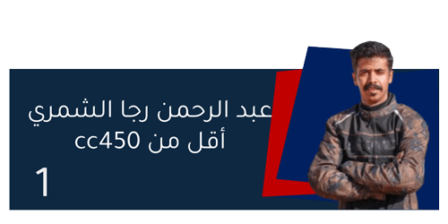 | الاول في فئته | عبد الرحمن رجا الشمري | أقل من 450cc | 03:58.5 |