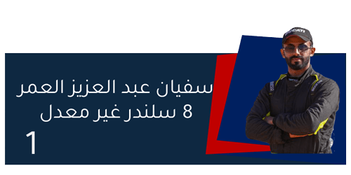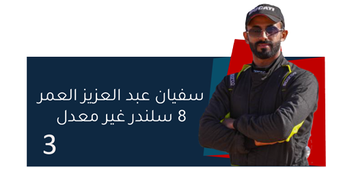 | الاول في فئته | سفيان عبد العزيز العمر | فئة 8 سلندر غير معدل | 03:15.8 |